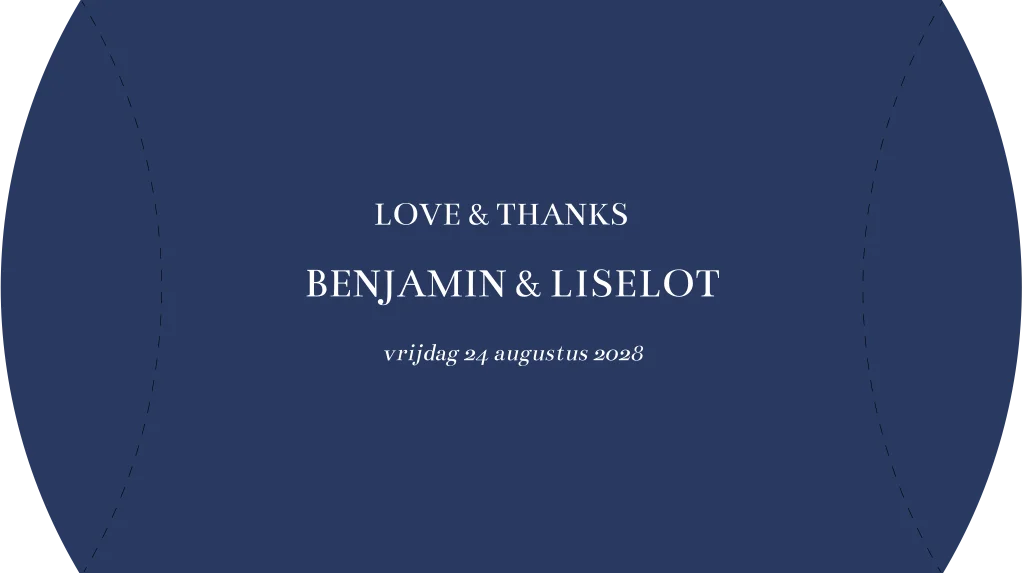 Een gondeldoosje om te gebruiken als bedankje op jullie bruiloft. Pas het doosje nog helemaal naar wens aan. Het doosje mogen jullie zelf nog vouwen en in elkaar zetten. Formaat van het doosje is 14x8,5 cm. Dit doosje is passend bij de trouwhuisstijl Classic Blue.
