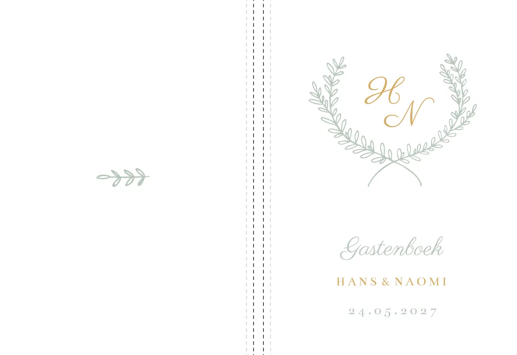 Een stijlvol gastenboek voor jullie bruiloft. En helemaal in de stijl van jullie trouwkaart! Formaat: staand, 72 blanco pagina's om te beschrijven. Het boek heeft een glanzende harde kaft en kan niet worden bedrukt met folie. Passend bij de trouwhuisstijl Green Elegance.