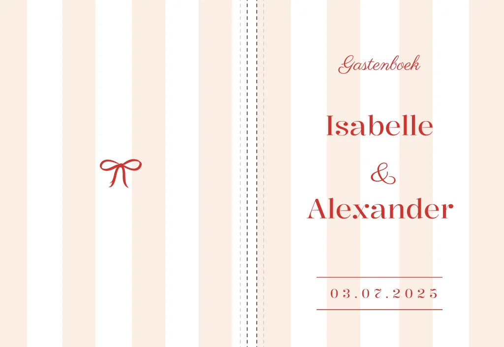 Een stijlvol gastenboek voor jullie bruiloft. En helemaal in de stijl van jullie trouwkaart! Formaat: staand, 72 blanco pagina's om te beschrijven. Het boek heeft een glanzende harde kaft en kan niet worden bedrukt met folie. Passend bij de trouwhuisstijl Loving Red.