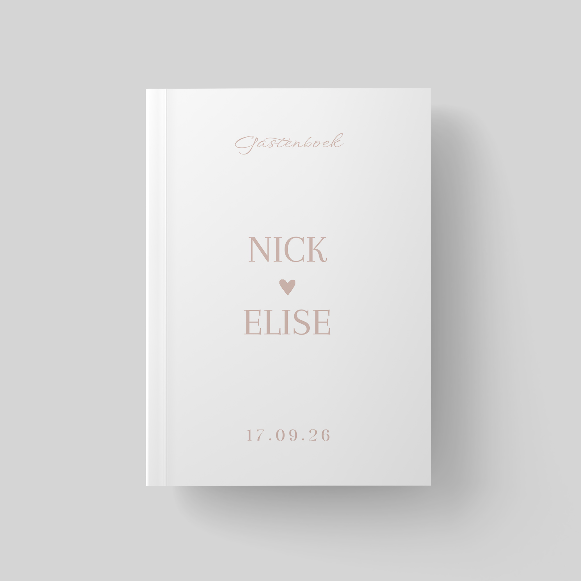 Een romantisch gastenboek met witte achtergrond en roze letters. Pas de cover aan naar de stijl van jullie trouwkaart. Formaat: staand, 72 blanco pagina's aan de binnenzijde. Het boek heeft een glanzende harde kaft.