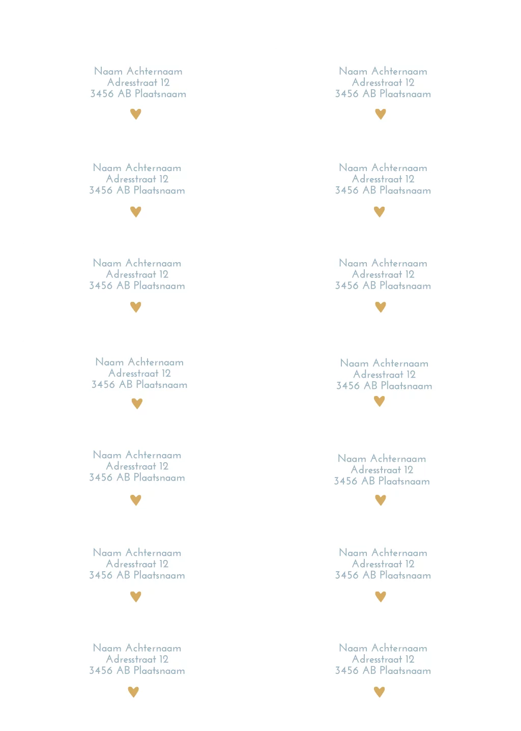 Maak zelf de adresstickers voor op de envelop van jullie geboortekaartje! De adresstickers hebben een formaat van 97x34 mm en zijn afgewerkt met ronde hoeken. Er zitten 14 stuks op een vel. Deze adresstickers hoort bij geboortekaartje kalkpapier Lucas.