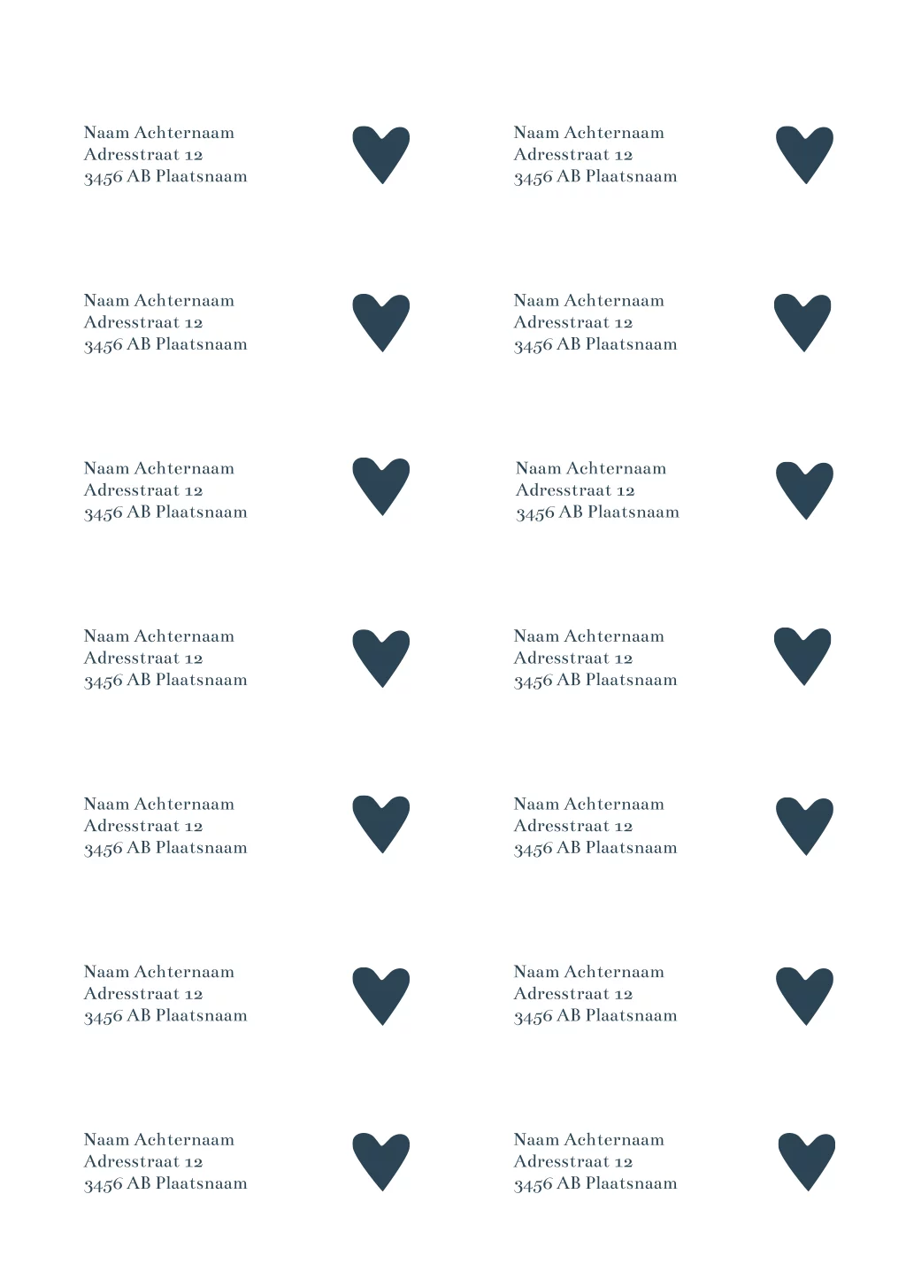 Maak zelf de adresstickers voor op de envelop van jullie geboortekaartje! De adresstickers hebben een formaat van 97x34 mm en zijn afgewerkt met ronde hoeken. Er zitten 14 stuks op een vel. Deze adresstickers hoort bij geboortekaartje labelkaart Noud.