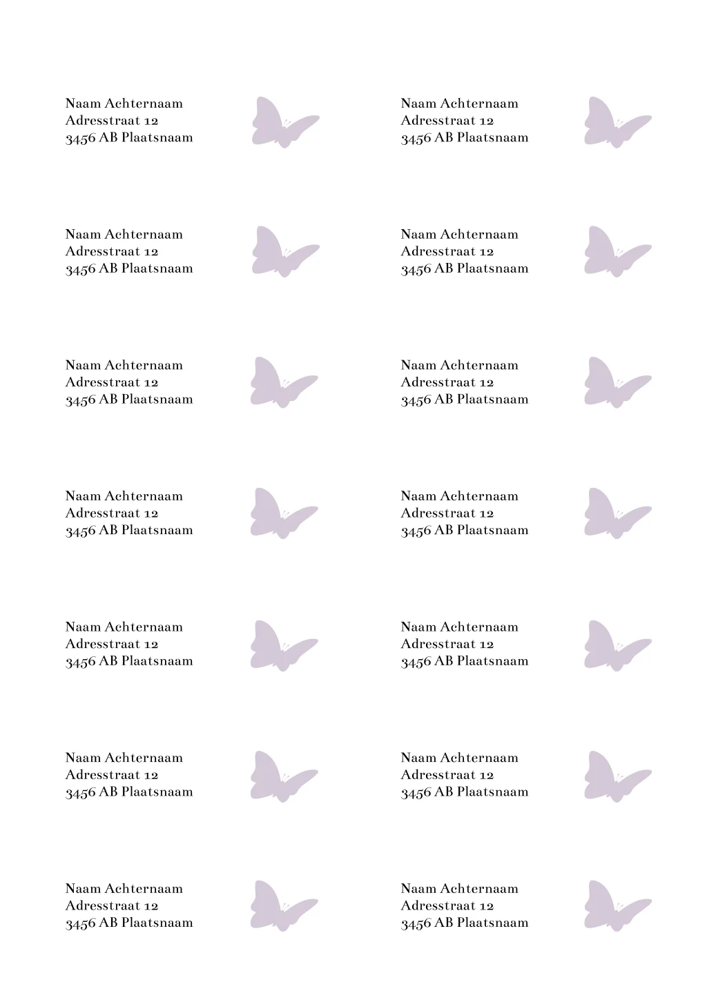 Maak zelf de adresstickers voor op de envelop van jullie geboortekaartje. Deze adresstickers hebben een formaat van 97x34 mm en zijn afgewerkt met ronde hoeken. Er zitten 14 stuks op een vel. Kies vooraf het aantal vellen dat je nodig hebt. Deze adresstickers horen bij het geboortekaartje van Philou.
