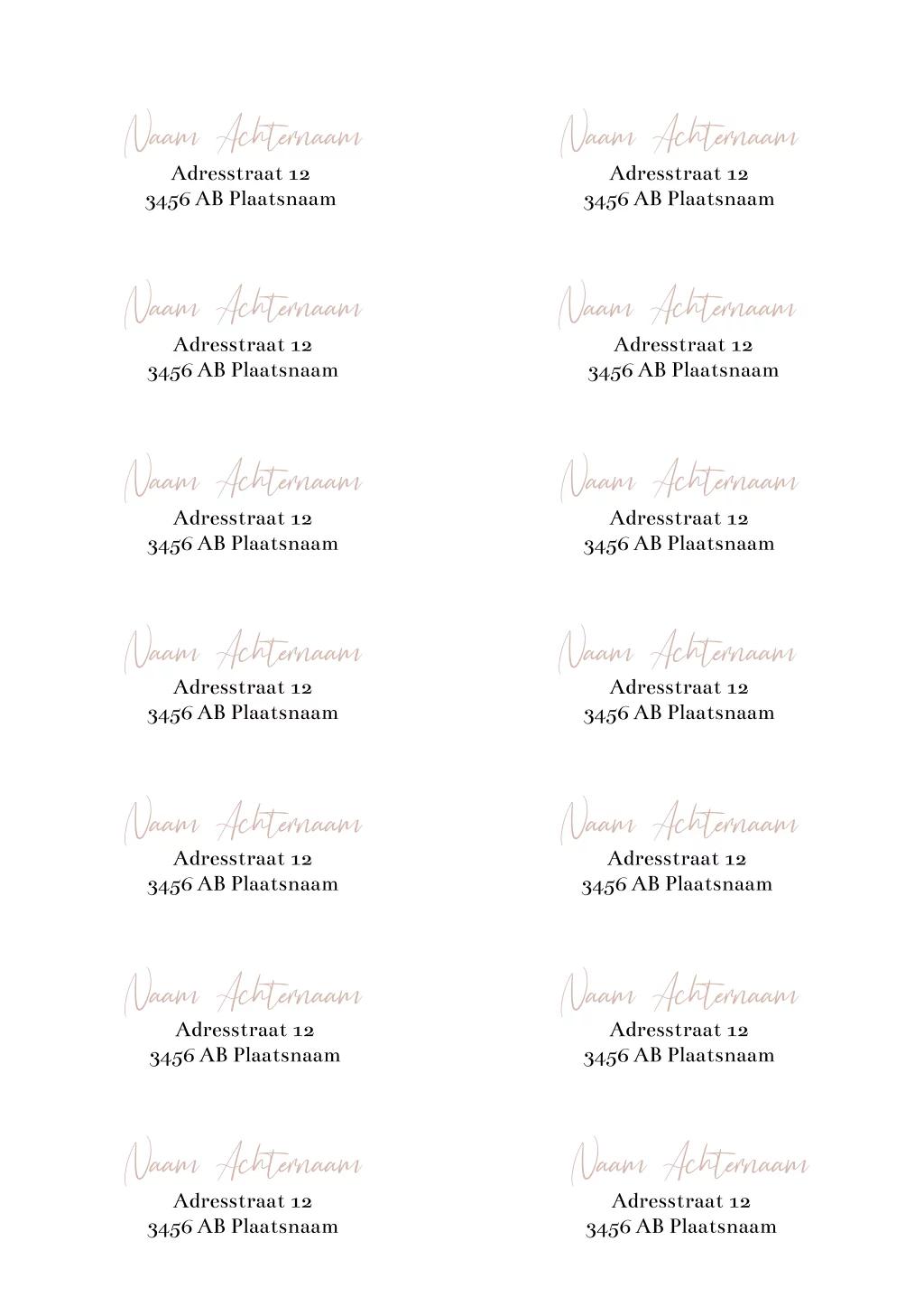 Maak zelf bij het geboortekaartje labelkaart Sofie bijpassende adresstickers voor op de envelop. 14 stuks per vel, 97x34 mm met afgeronde hoeken.