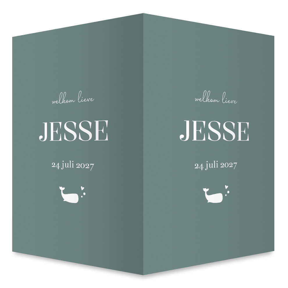 Kondig de geboorte van jullie zoon aan met een geboortebord in dezelfde stijl als het geboortekaartje. Het raambord heeft een blauw/groene achtergrond met een walvis. Pas het bord nog naar wens aan.