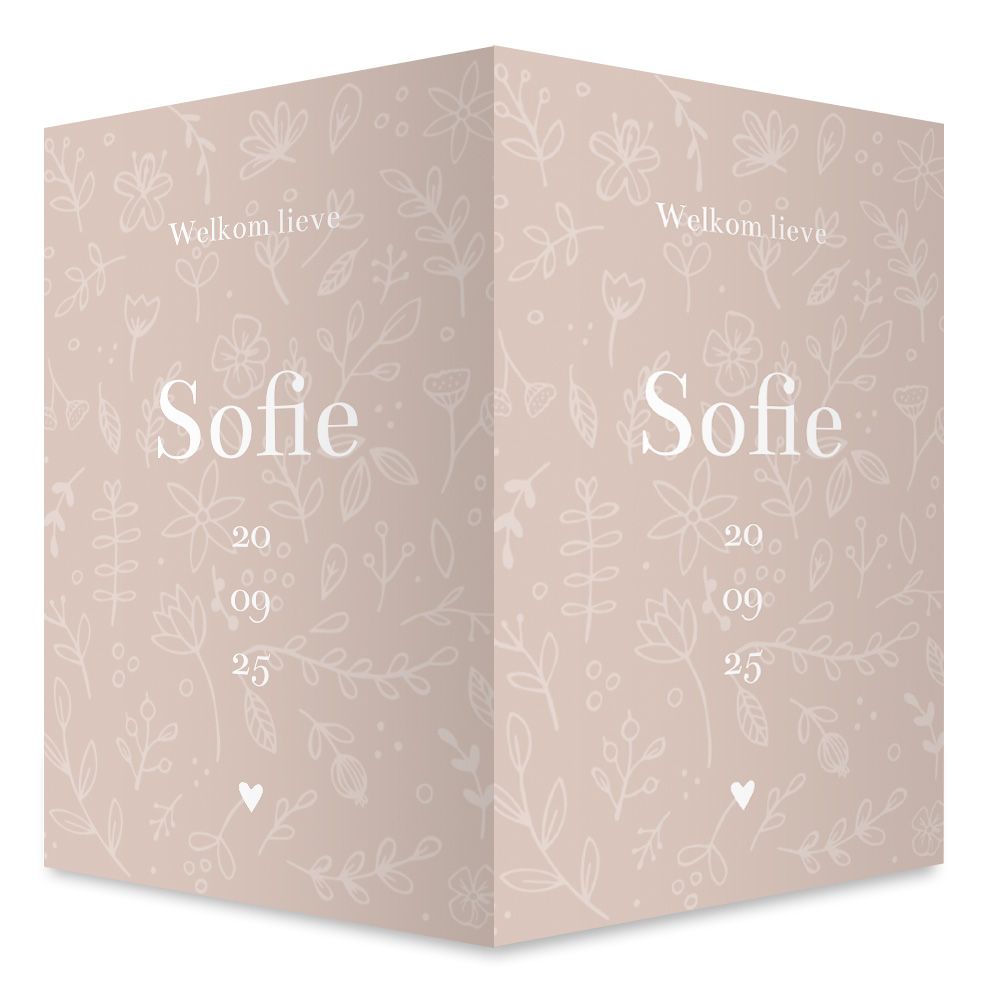 Maak de geboorte van jullie meisje bekend met een mooi geboortebord voor aan het raam. Een raambord in de stijl van het geboortekaartje met een lichtroze bloemenpatroon. Pas het bord nog naar wens aan in de editor.