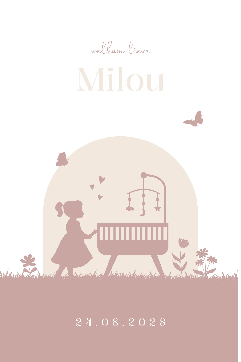 Geboortebord dubbel 60x40 Milou silhouet wiegje bloemen