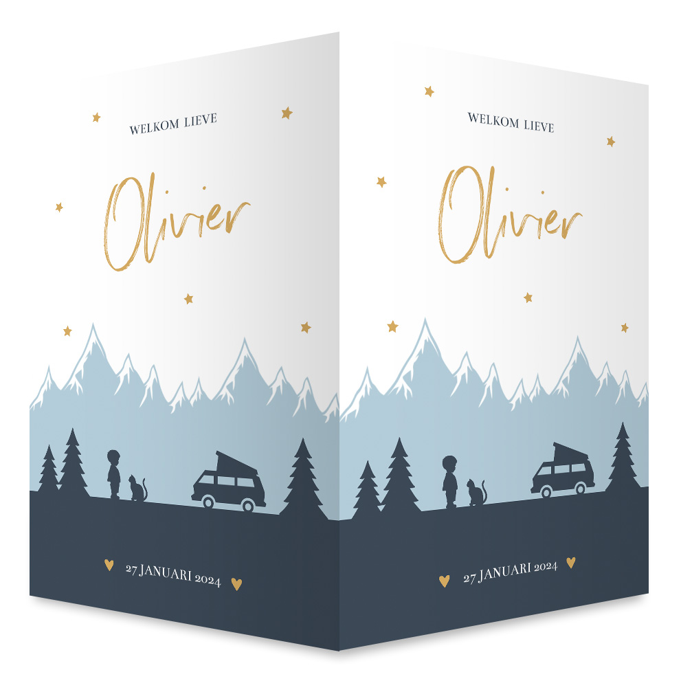 Geboortebord jongen bergen met camper