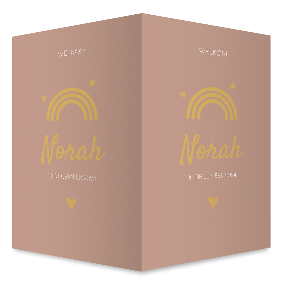 Maak de geboorte van jullie kindje bekend met een geboortebord in de stijl van het geboortekaartje! Bewerk het bord nog naar wens in de editor. Dit bord heeft een oudroze kleur met een regenboog.