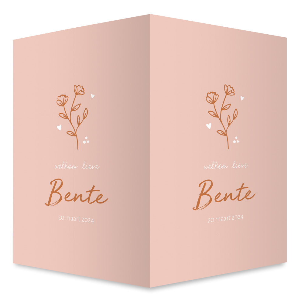 Kondig de geboorte van jullie dochter aan met een mooi geboortebord voor op het raam! Dit raambord heeft een perzik kleurige achtergrond met een getekende bloem.