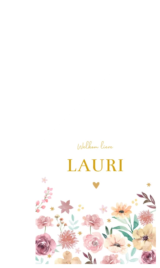 Geboortevlag klein geboortekaartje Lauri bloemen romantisch