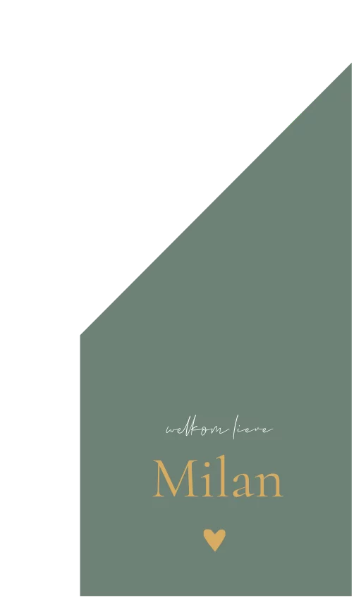 Geboortevlag klein geboortekaartje Milan groen goud hartje
