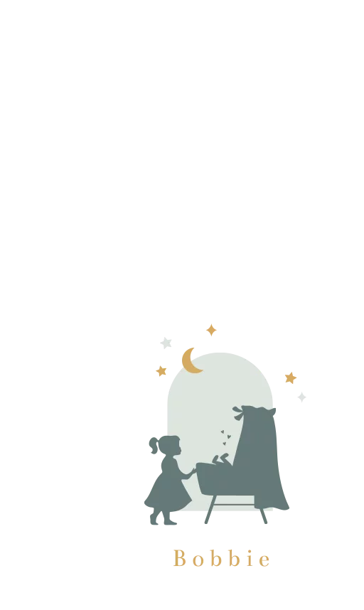 Ontwerp een geboortevlag om de geboorte van jullie zoon aan te kondigen. Deze vlag heeft een groene wieg met een silhouet van een grote zus. Passend bij het geboortekaartje van Bobbie. Pas de vlag in de editor zelf nog naar wens aan.