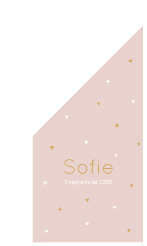 Geboortevlag klein geboortekaartje Sofie lichtroze hartjes