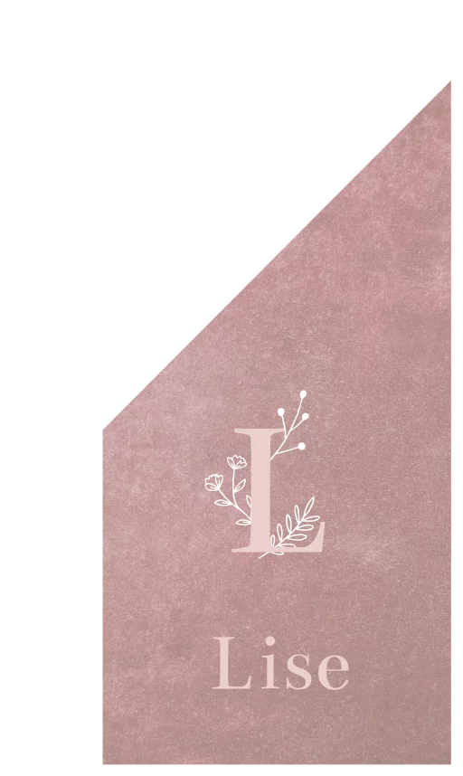 Ontwerp een geboortevlag om de geboorte van jullie dochter aan te kondigen. Deze vlag heeft een oudroze velvet look achtergrond met de eerste letter van de baby. Passend bij het geboortekaartje van Lise. Pas de vlag in de editor zelf nog naar wens aan.