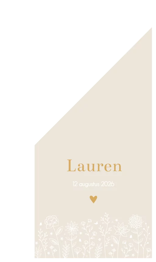 Geboortevlag klein geboortekaartje Lauren romantisch beige bloemen