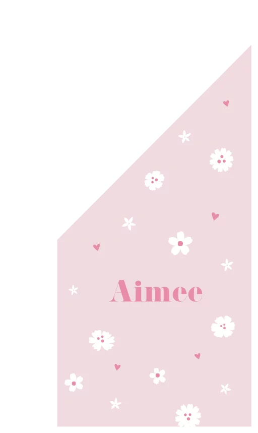 Ontwerp een geboortevlag om de geboorte van jullie dochter aan te kondigen. Deze roze vlag heeft witte bloemen en roze hartjes. Passend bij het geboortekaartje van Aimee. Pas de vlag in de editor zelf nog naar wens aan.