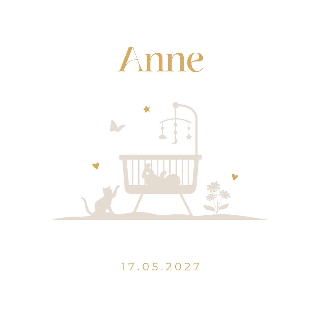 Ontwerp zelf een mooie raamsticker voor op het raam om de geboorte van jullie kindje mee aan te kondigen! Deze ronde sticker heeft een diameter van 60 cm. Passend bij het geboortekaartje van Anne.