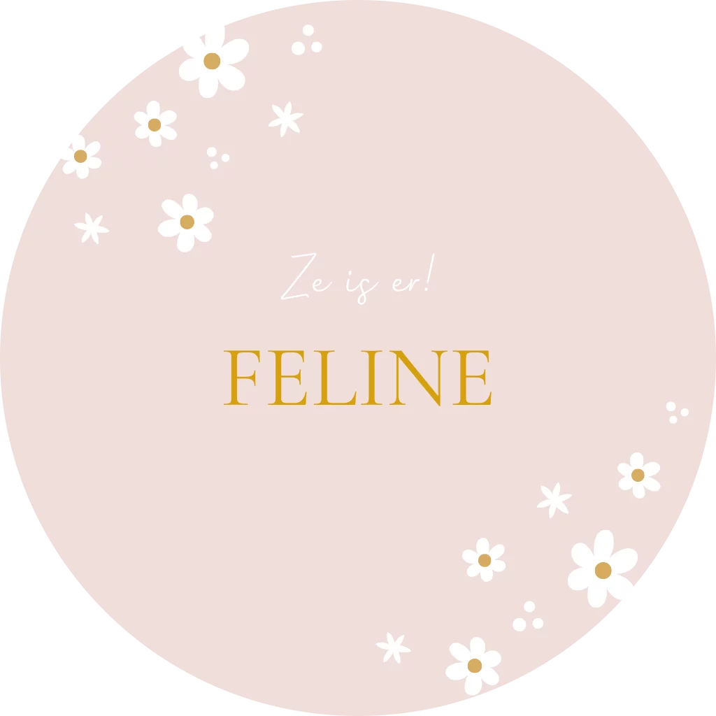 Ontwerp zelf een mooie raamsticker voor op het raam om de geboorte van jullie kindje mee aan te kondigen! Deze ronde sticker heeft een diameter van 60 cm. Passend bij het geboortekaartje van Feline.
