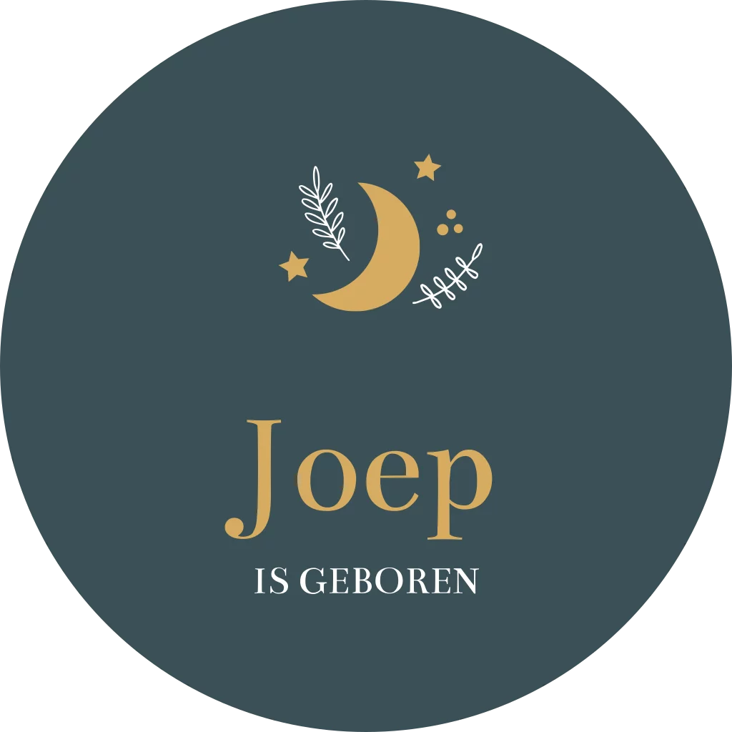 Ontwerp zelf een mooie raamsticker voor op het raam om de geboorte van jullie kindje mee aan te kondigen! Deze ronde sticker heeft een diameter van 60 cm. Passend bij het geboortekaartje van Joep.