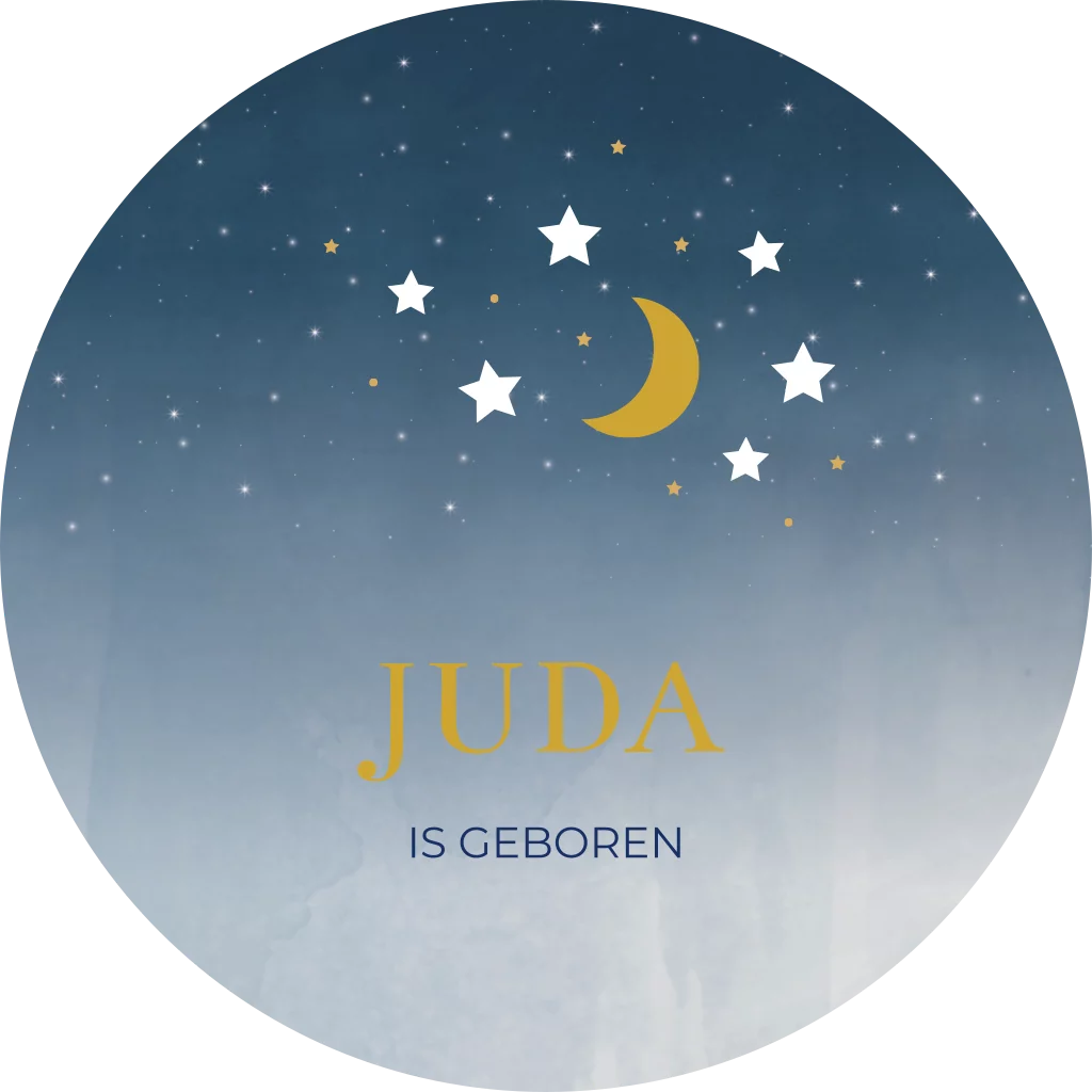 Ontwerp zelf een mooie raamsticker voor op het raam om de geboorte van jullie kindje mee aan te kondigen! Deze ronde sticker heeft een diameter van 60 cm. Passend bij het geboortekaartje van Juda.