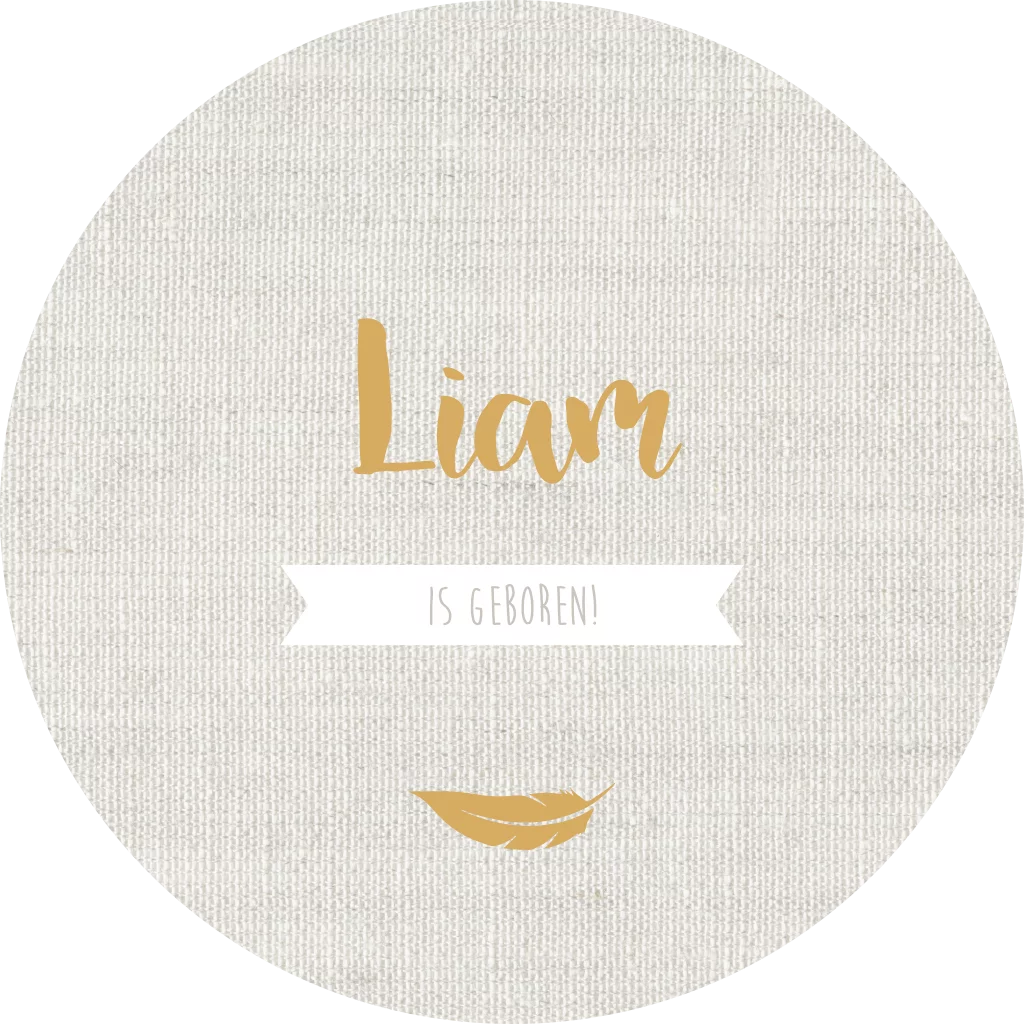 Ontwerp zelf een mooie raamsticker voor op het raam om de geboorte van jullie kindje mee aan te kondigen! Deze ronde sticker heeft een diameter van 60 cm. Passend bij het geboortekaartje van Liam.