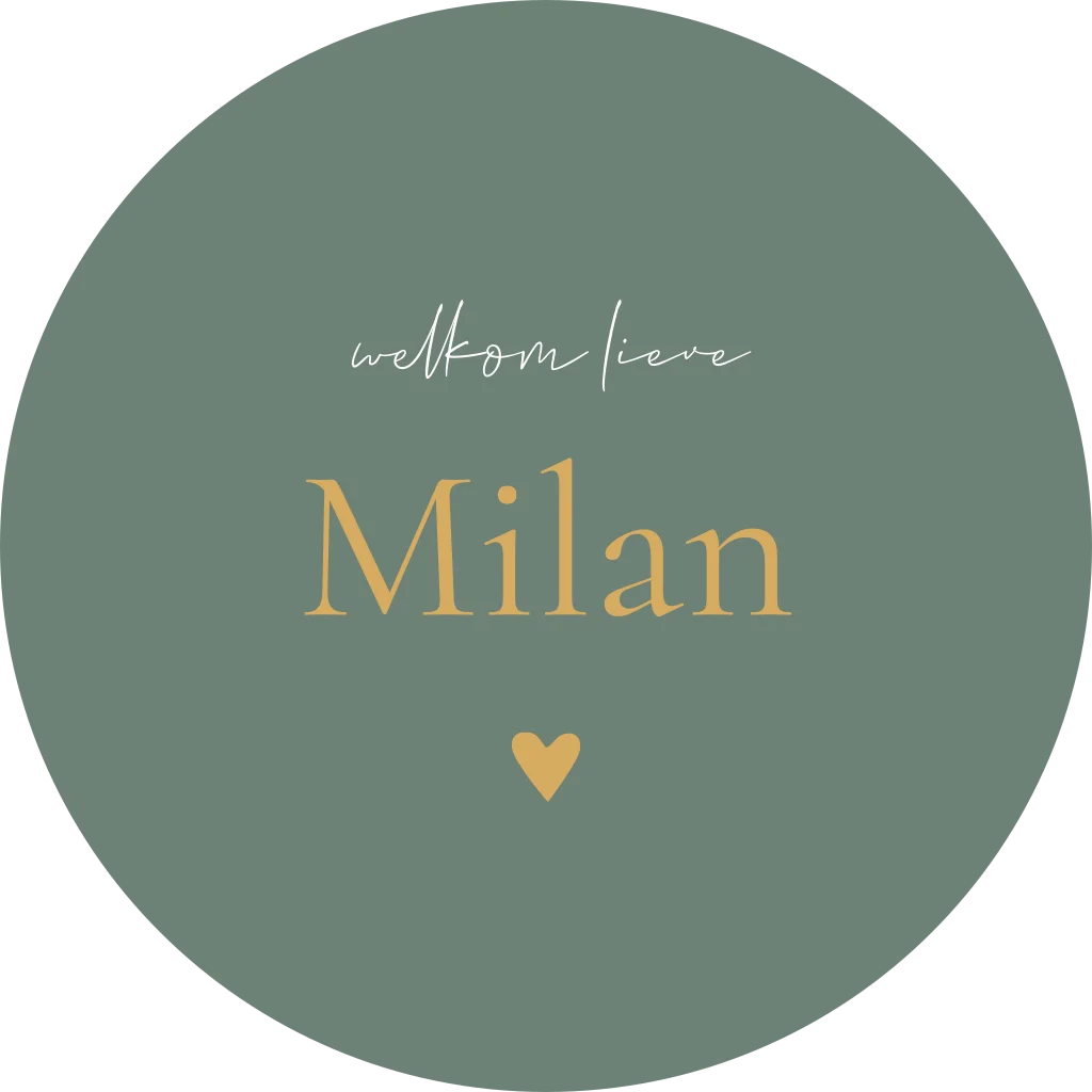 Ontwerp zelf een mooie raamsticker voor op het raam om de geboorte van jullie kindje mee aan te kondigen! Deze ronde sticker heeft een diameter van 60 cm. Passend bij het geboortekaartje van Milan.