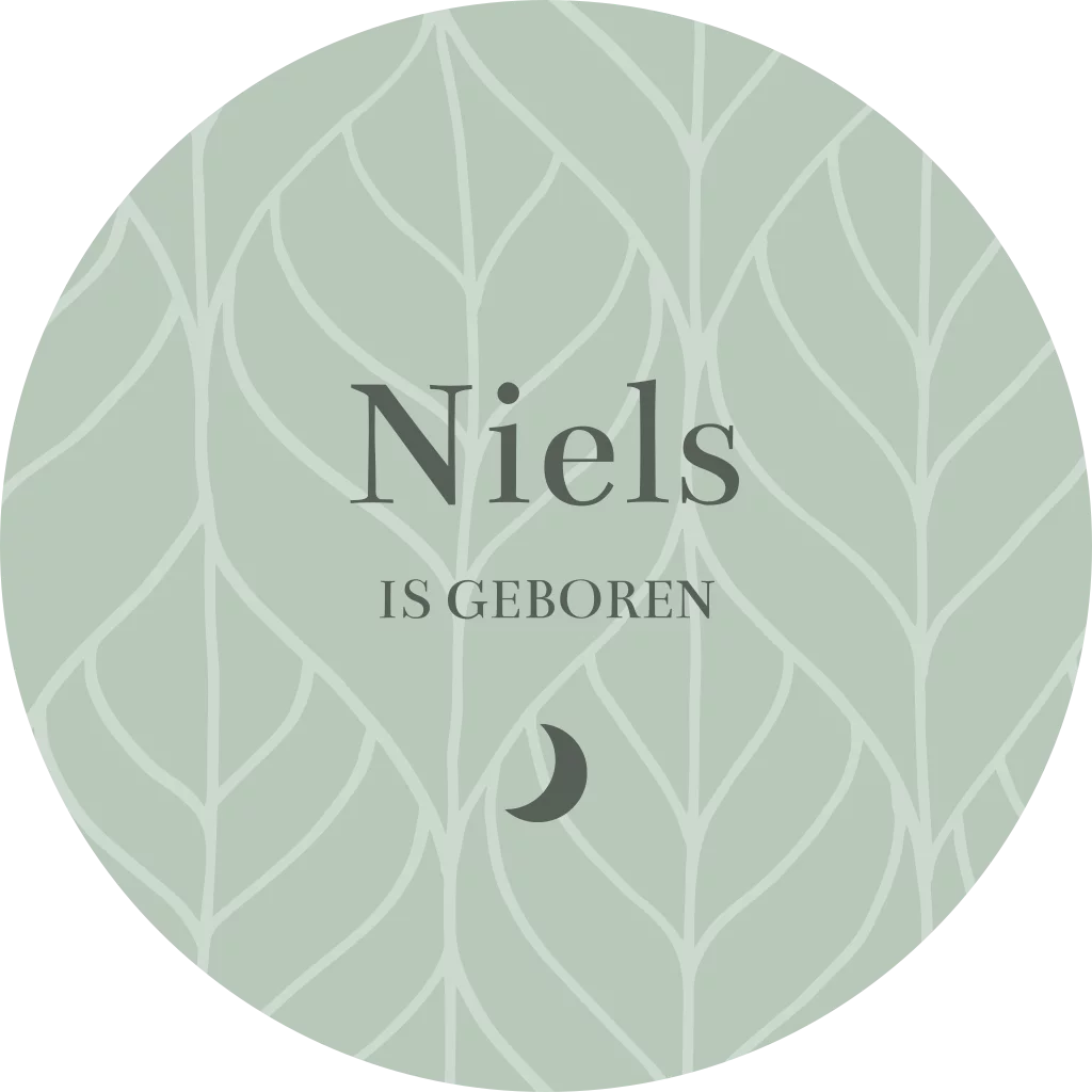 Ontwerp zelf een mooie raamsticker voor op het raam om de geboorte van jullie kindje mee aan te kondigen! Deze ronde sticker heeft een diameter van 60 cm. Passend bij het geboortekaartje van Niels.