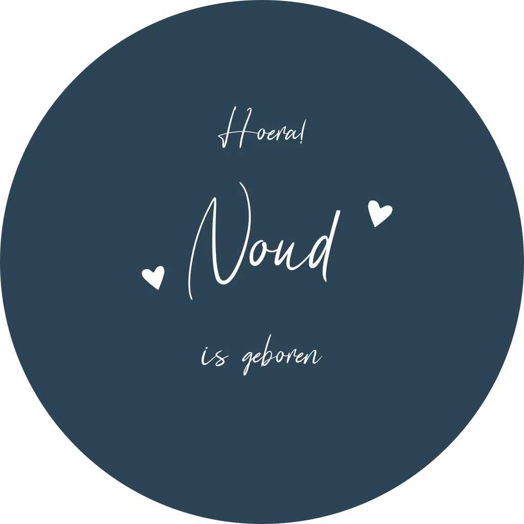 Ontwerp zelf een mooie raamsticker voor op het raam om de geboorte van jullie kindje mee aan te kondigen! Deze ronde sticker heeft een diameter van 60 cm. Passend bij het geboortekaartje van Noud.