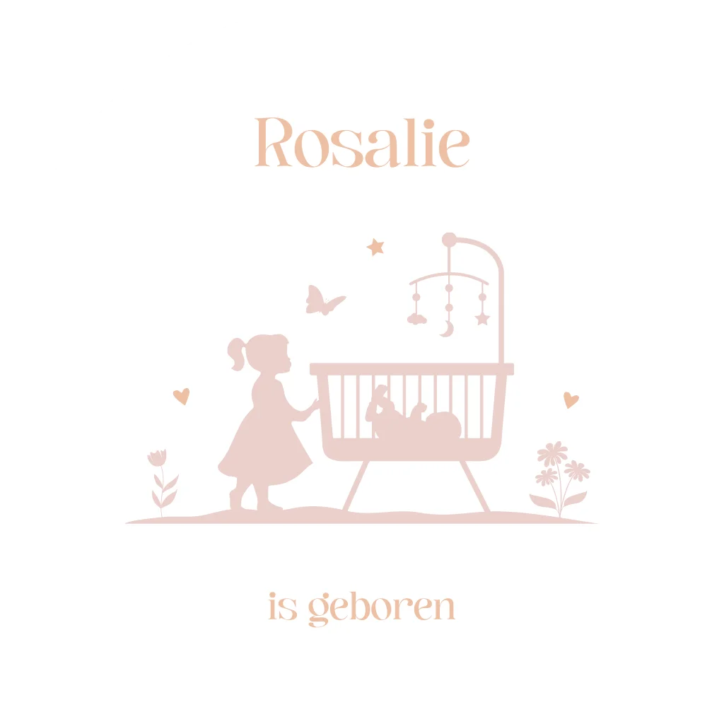 Ontwerp zelf een mooie raamsticker voor op het raam om de geboorte van jullie kindje mee aan te kondigen! Deze ronde sticker heeft een diameter van 60 cm. Passend bij het geboortekaartje van Rosalie.