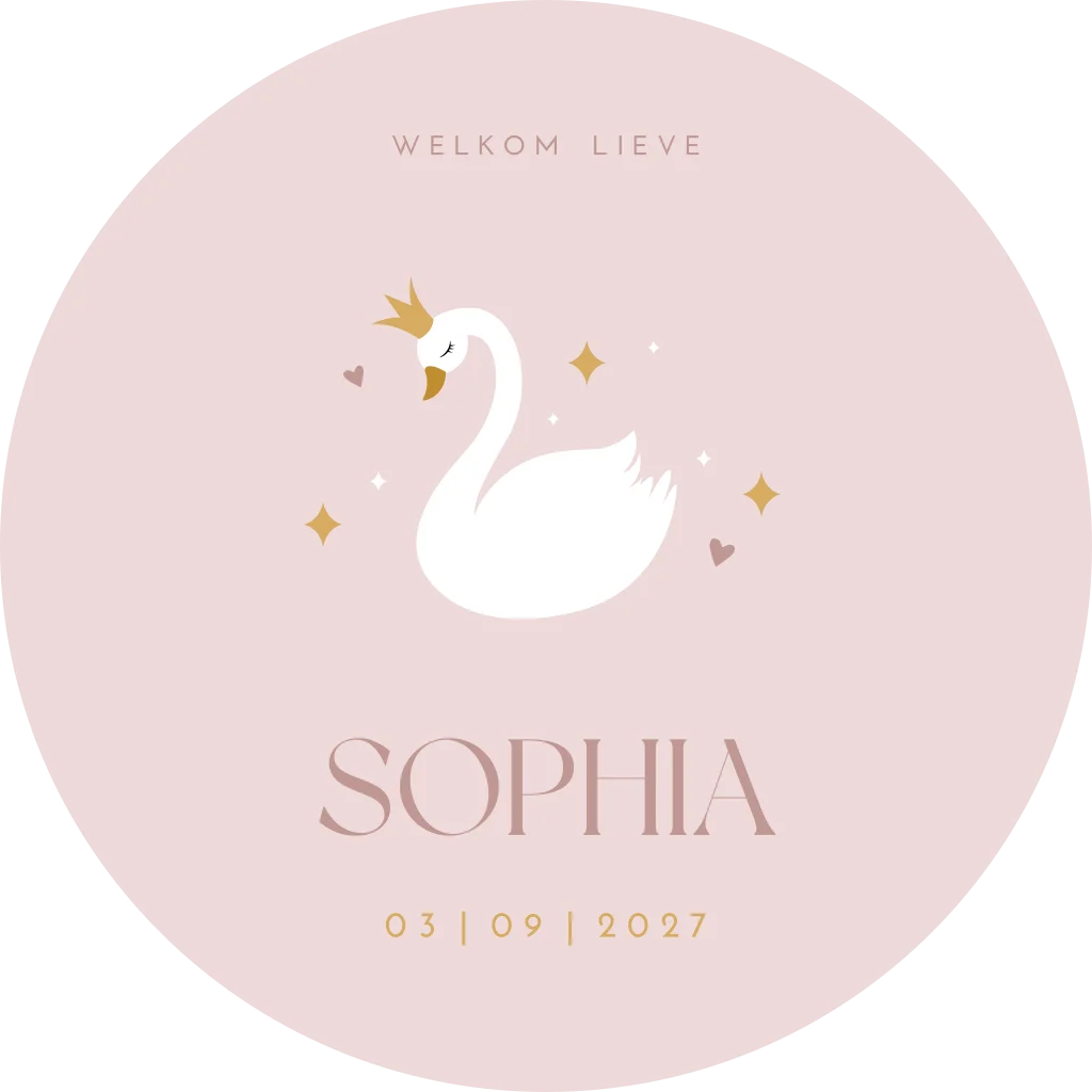 Ontwerp zelf een mooie raamsticker voor op het raam om de geboorte van jullie kindje mee aan te kondigen! Deze ronde sticker heeft een diameter van 60 cm. Passend bij het geboortekaartje van Sophia.