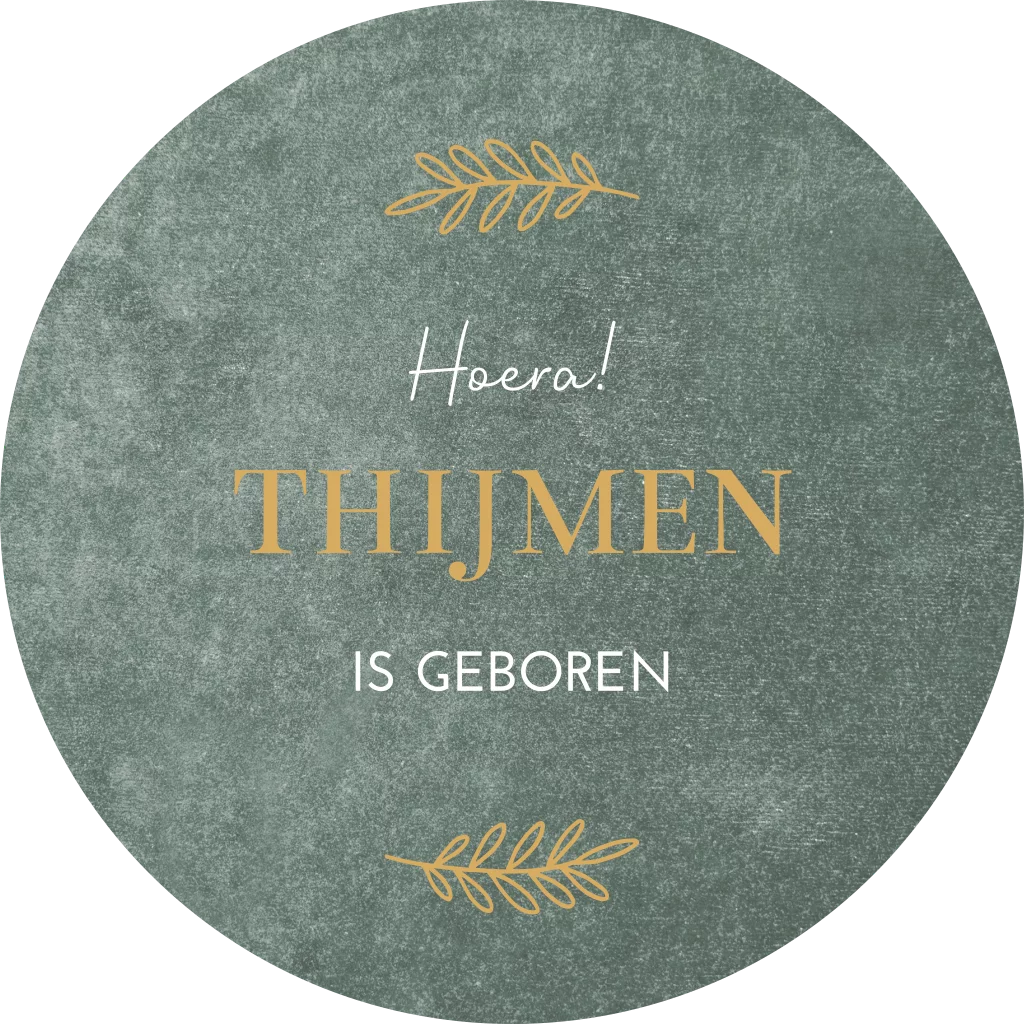 Ontwerp zelf een mooie raamsticker voor op het raam om de geboorte van jullie kindje mee aan te kondigen! Deze ronde sticker heeft een diameter van 60 cm. Passend bij het geboortekaartje van Thijmen.