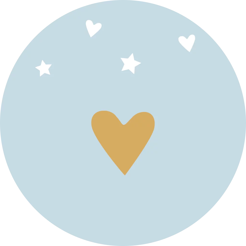 Ontwerp je eigen sluitsticker voor op de envelop in de stijl van het geboortekaartje! Deze sticker heeft een blauwe achtergrond met hartjes en sterren. Pas de kleuren van de sticker zelf naar wens aan.