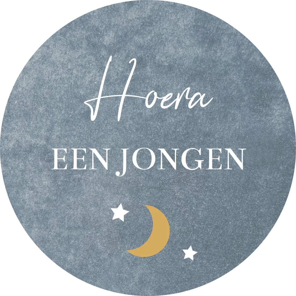 Ontwerp je eigen sluitsticker voor op de envelop in de stijl van het geboortekaartje! Deze sticker heeft een blauwe velvet look achtergrond met de tekst: hoera een jongen. Pas de kleuren van de sticker zelf naar wens aan.