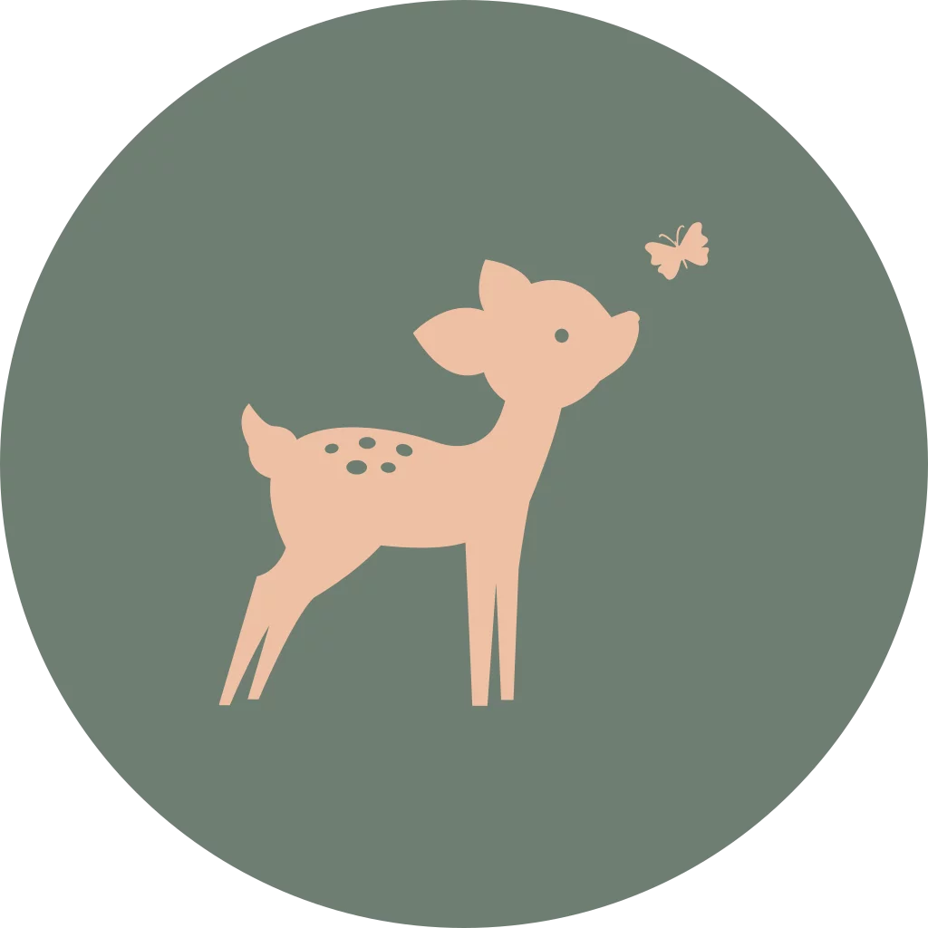 Ontwerp je eigen sluitsticker voor op de envelop in de stijl van het geboortekaartje! Deze sticker heeft een groene achtergrond met een hertje. Pas de kleuren van de sticker zelf naar wens aan