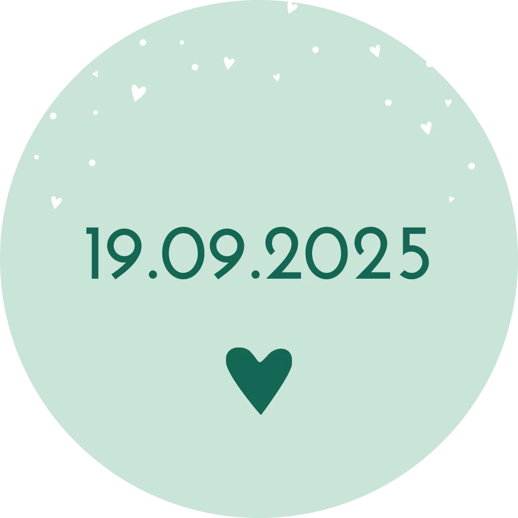 Ontwerp je eigen sluitsticker voor op de envelop in de stijl van het geboortekaartje! Deze sticker heeft een groene achtergrond met hartjes en de geboortedatum. Pas de kleuren van de sticker zelf naar wens aan.