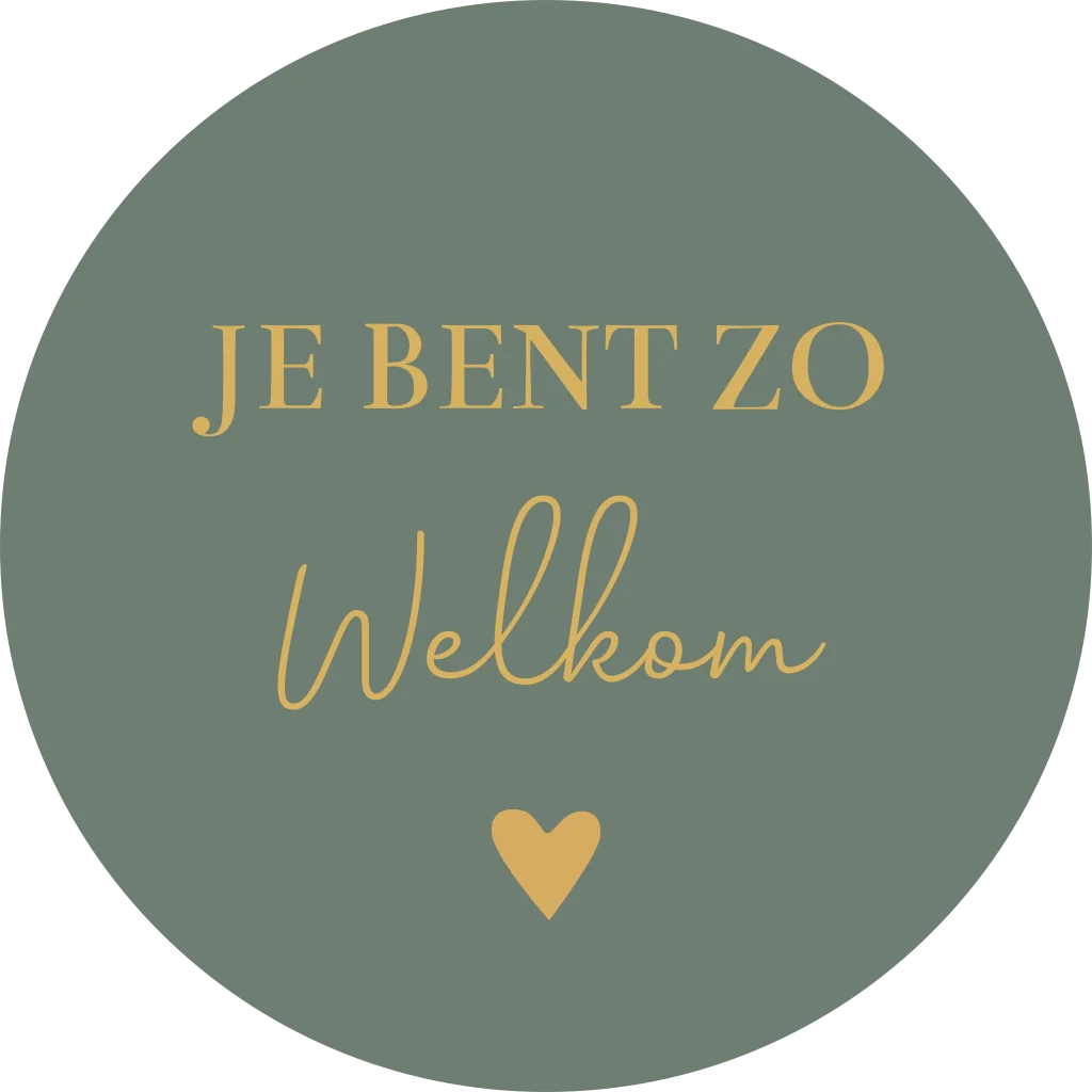 Ontwerp je eigen sluitsticker voor op de envelop in de stijl van het geboortekaartje! Op deze groene sticker staat de tekst: Jij bent zo welkom. Pas de sticker zelf naar wens aan.