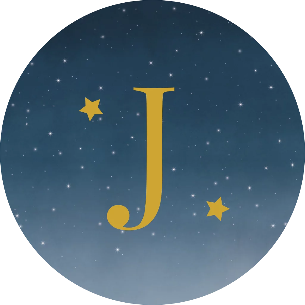 Ontwerp je eigen sluitsticker voor op de envelop in de stijl van het geboortekaartje! Deze sticker heeft een blauwe achtergrond met sterren. Pas de kleuren van de sticker zelf naar wens aan.