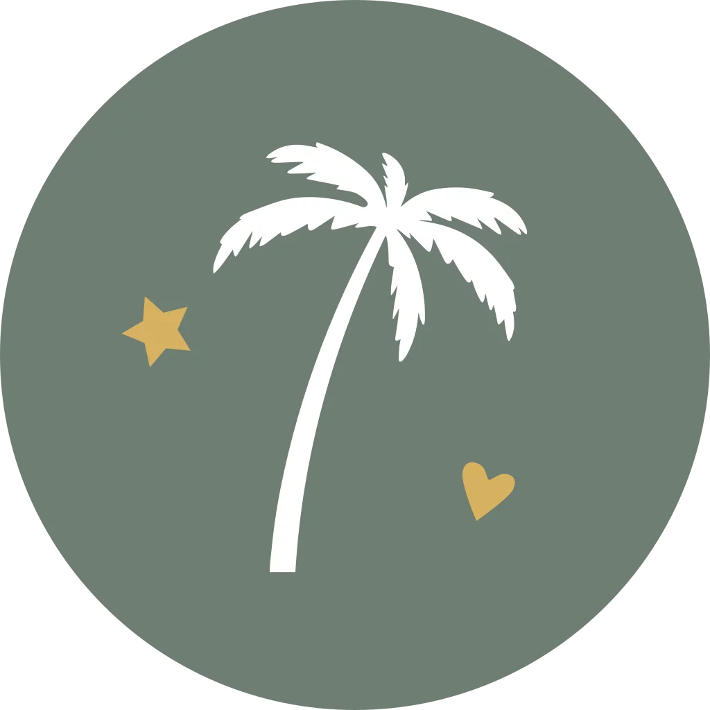 Ontwerp je eigen sluitsticker voor op de envelop in de stijl van het geboortekaartje! Deze sticker heeft een groene achtergrond met een palmboom. Pas de kleuren van de sticker zelf naar wens aan.