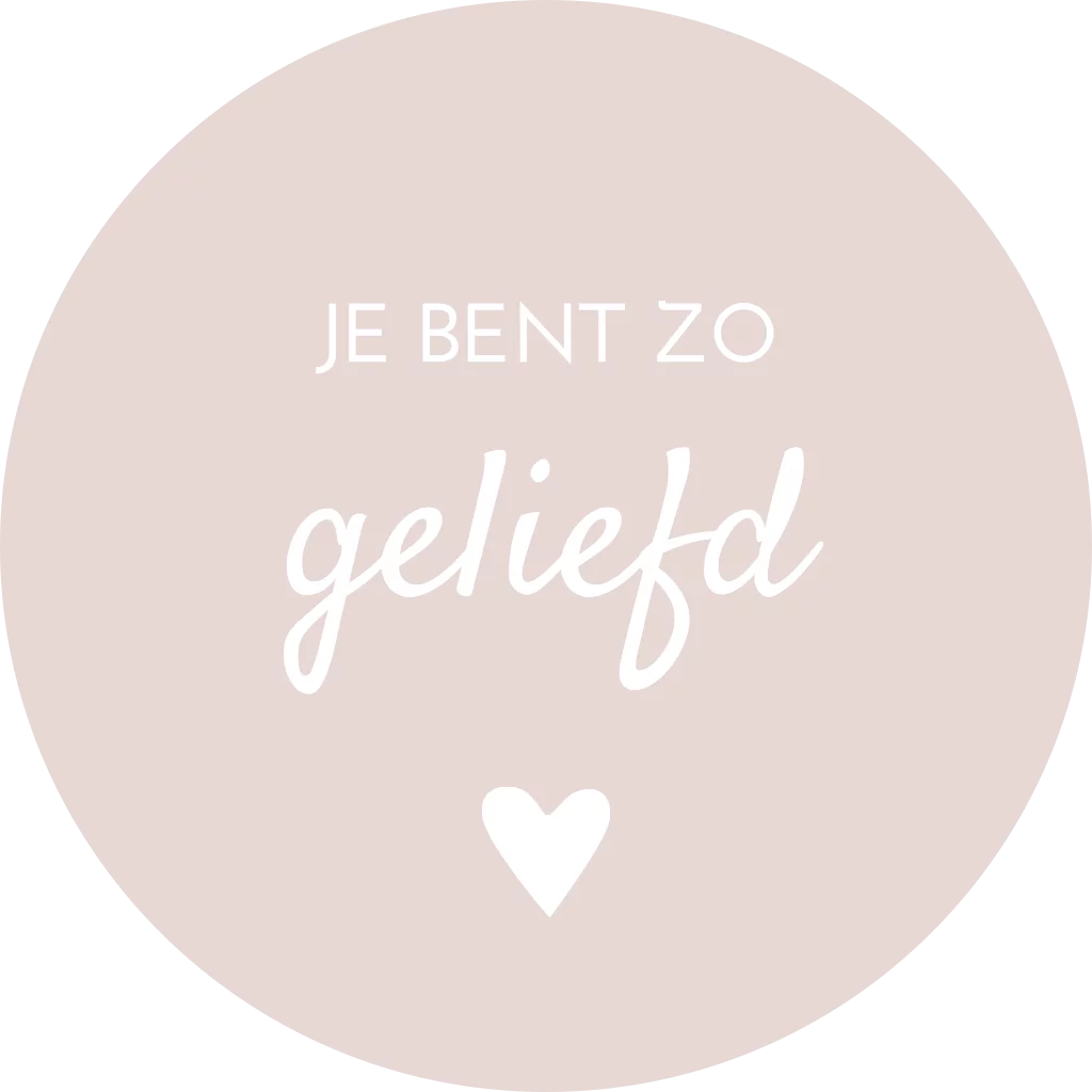 Ontwerp je eigen sluitsticker voor op de envelop in de stijl van het geboortekaartje! Deze sticker heeft een lichtroze achtergrond met de tekst: je bent zo geliefd. Pas de kleuren van de sticker zelf naar wens aan.