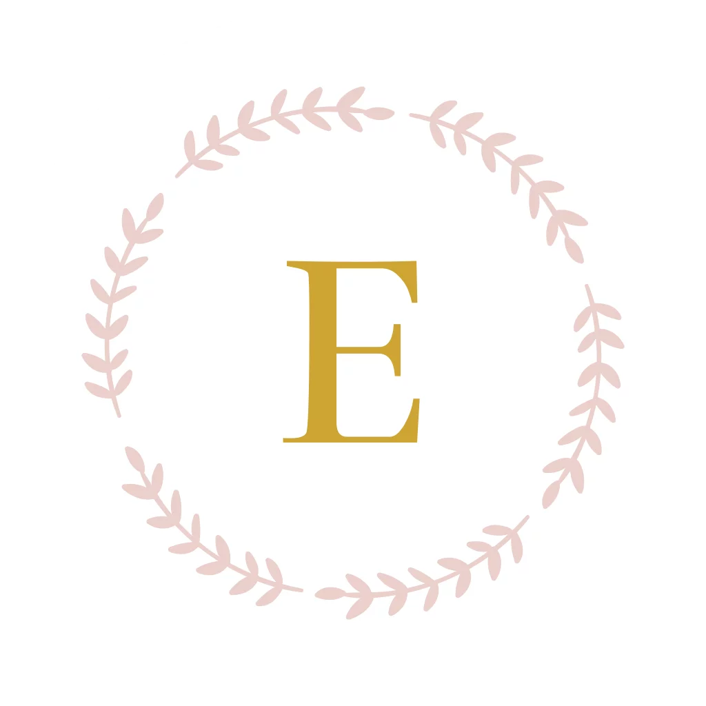 Sluitsticker voor op een envelop. De sticker heeft een witte achtergrond met roze krans en gouden eerste letter van de naam. Pas de kleuren zelf naar wens aan.