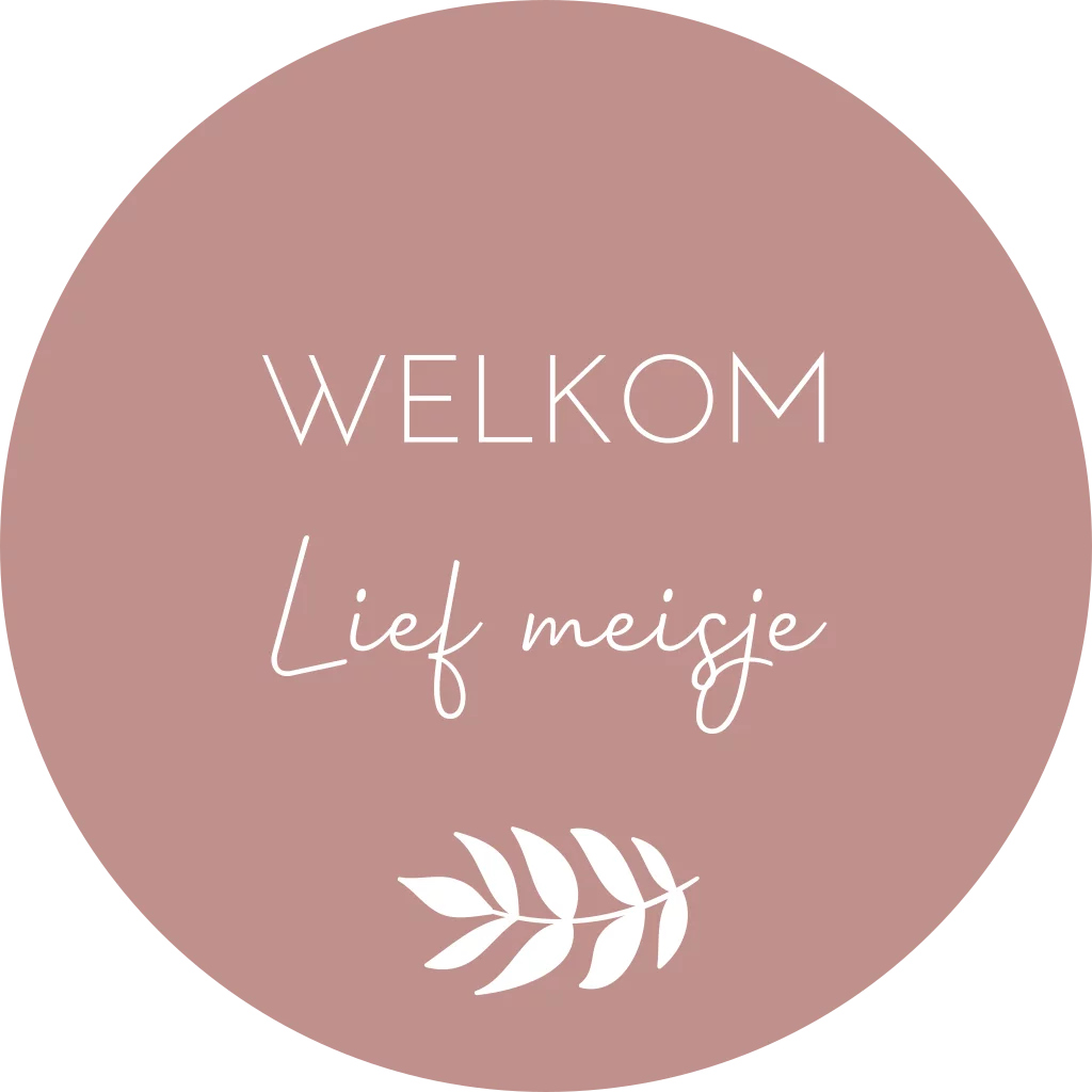 Ontwerp je eigen sluitsticker voor op de envelop in de stijl van het geboortekaartje! De sticker heeft een roze achtergrond met de tekst: Welkom lief meisje. Pas de sticker zelf naar wens aan.