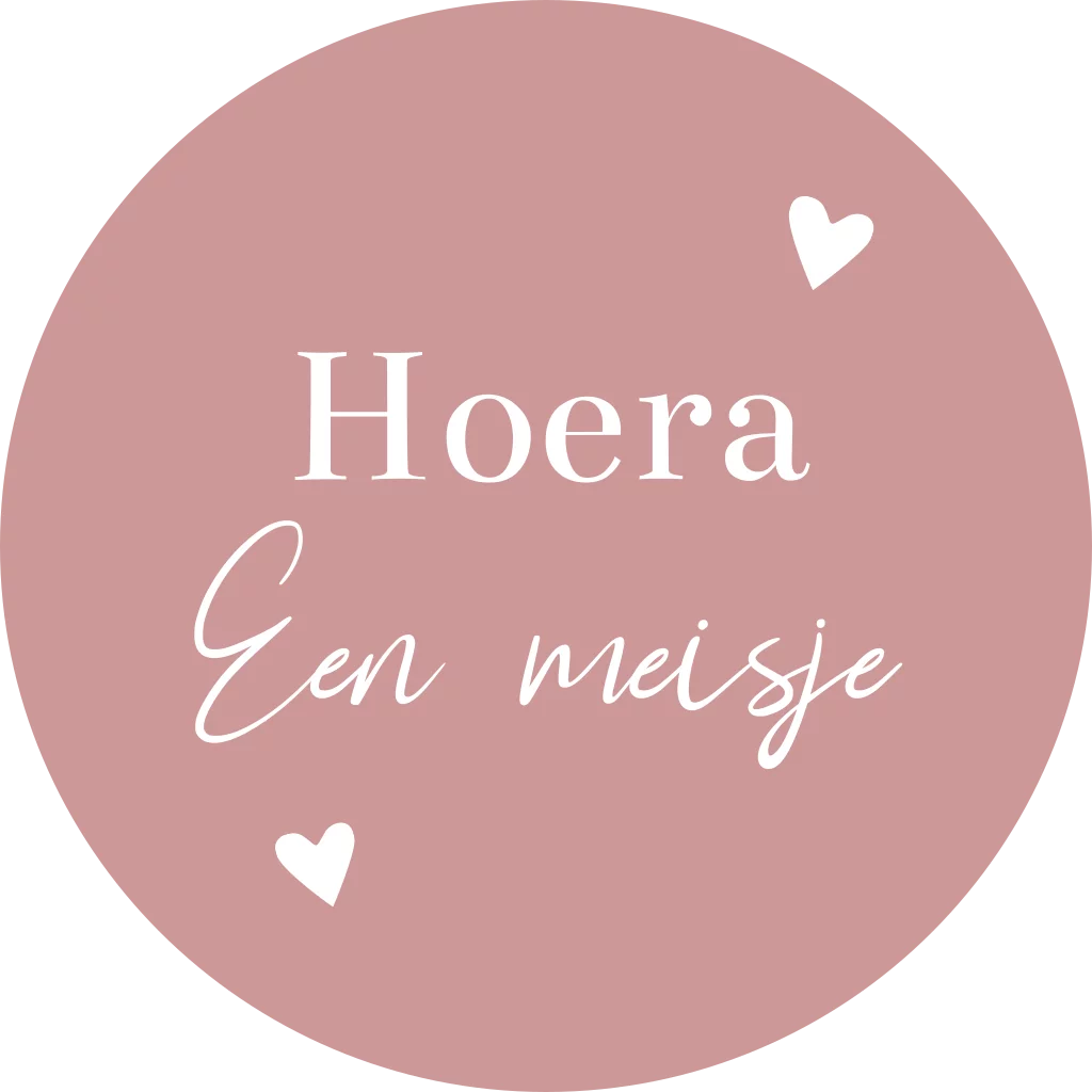 Ontwerp je eigen sluitsticker voor op de envelop in de stijl van het geboortekaartje! Deze sticker heeft een roze achtergrond met de tekst: hoera een meisje. Pas de kleuren van de sticker zelf naar wens aan.