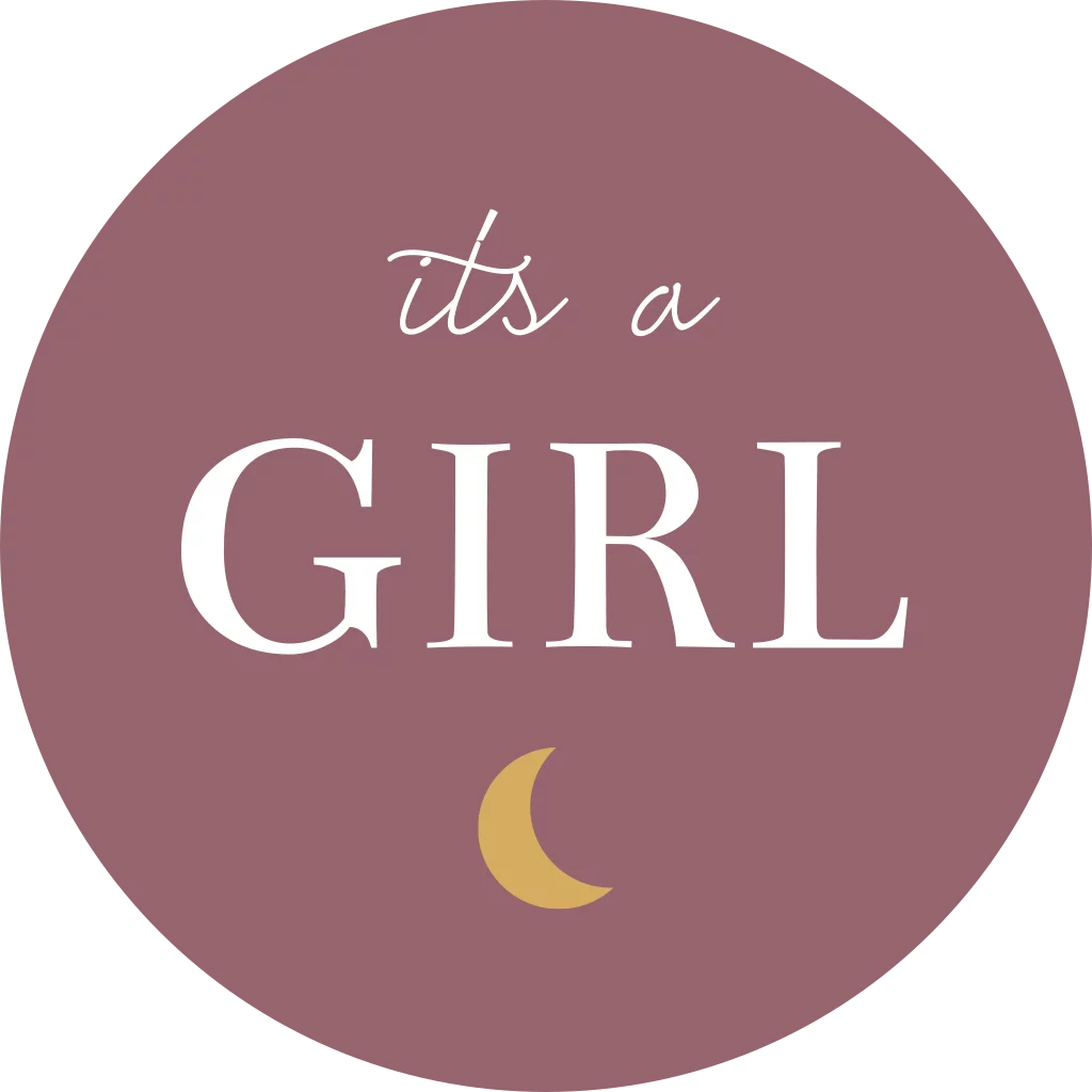 Ontwerp je eigen sluitsticker voor op de envelop in de stijl van het geboortekaartje! Deze sticker heeft een roze achtergrond, maantje en de tekst: its a girl. Pas de kleuren van de sticker zelf naar wens aan.