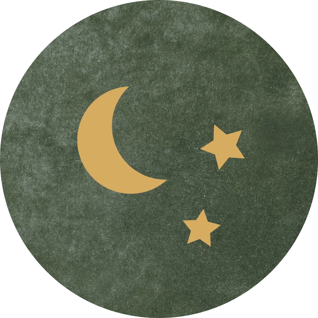 Ontwerp je eigen sluitsticker voor op de envelop in de stijl van het geboortekaartje! Deze sticker heeft een groene velvet look achtergrond met een maan en sterren. Pas de kleuren van de sticker zelf naar wens aan.