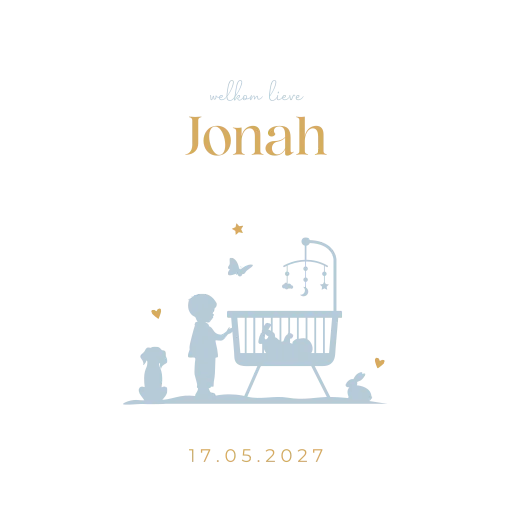 Tegeltje geboortekaartje Jonah wieg silhouet