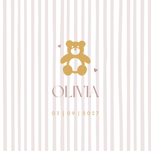 Tegeltje geboortekaartje Olivia streepjes beertje