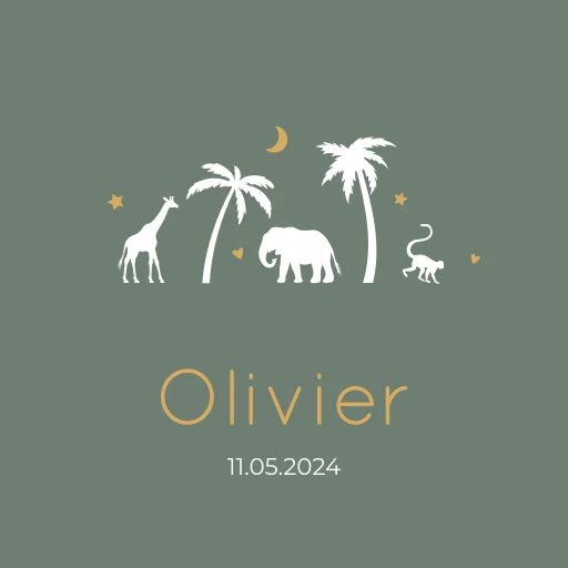 Tegeltje geboortekaartje Olivier groen tropische dieren