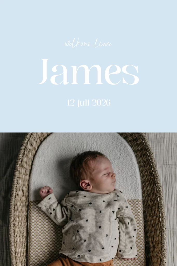 Een modern lichtblauw geboortekaartje met foto en rosefolie voor een jongen. Op de voorzijde kun je een foto toevoegen van jullie kindje en aan de binnenzijde is plaats voor een mooi gedichtje. Fotografie: celebratephotography.nl