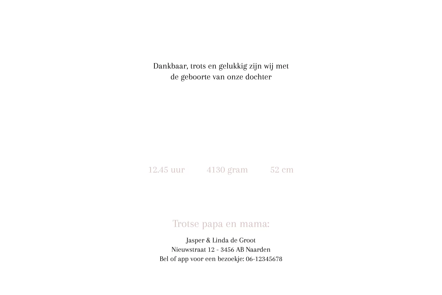Geboortekaartje meisje modern roze met foto en goudfolie